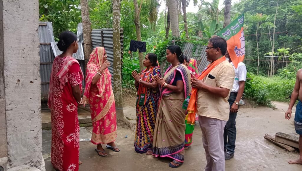 নদীয়ার শান্তিপুর বেলগড়িয়া দু’নম্বর পঞ্চায়েতের ২২৩ নাম্বার বুথে গ্রাম সভায় জাতীয় কংগ্রেসের হয়ে প্রার্থী হয়েছেন ৬০ বছর বয়সী রত্না ভদ্র। স্বামী প্রতুল ভদ্রর বয়স ৬৬। রোদ বৃষ্টি এড়িয়ে, সকালে খেলার মাঠ সহ প্রাতঃভ্রমণে আসা ভোটারদের এবং বিকেলে পাড়ার মোড়ে খেলার মাঠে ক্লাবে জমায়েত হওয়া পুরুষ মহিলাদের কাছে ভোট প্রার্থনা করছেন তারা। বয়সজনিত কারণে অত্যন্ত ধীরগতিতে, যাচ্ছেন প্রতি বাড়ি বাড়ি। নিজের কিংবা দলের লোকবল বা অর্থবল কম থাকার কারণে দেওয়াল লিখন সম্ভব হয়নি, তাই রঙিন সুন্দর একটি কার্ড ছাপিয়ে পৌঁছে দিচ্ছেন বাড়ি বাড়ি।