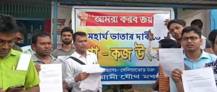জেলাশাসককে মিষ্টিমুখ করিয়ে শোকজ নোটিস হাতে নিয়ে সরকারি কর্মচারীদের অভিনব বিক্ষোভ