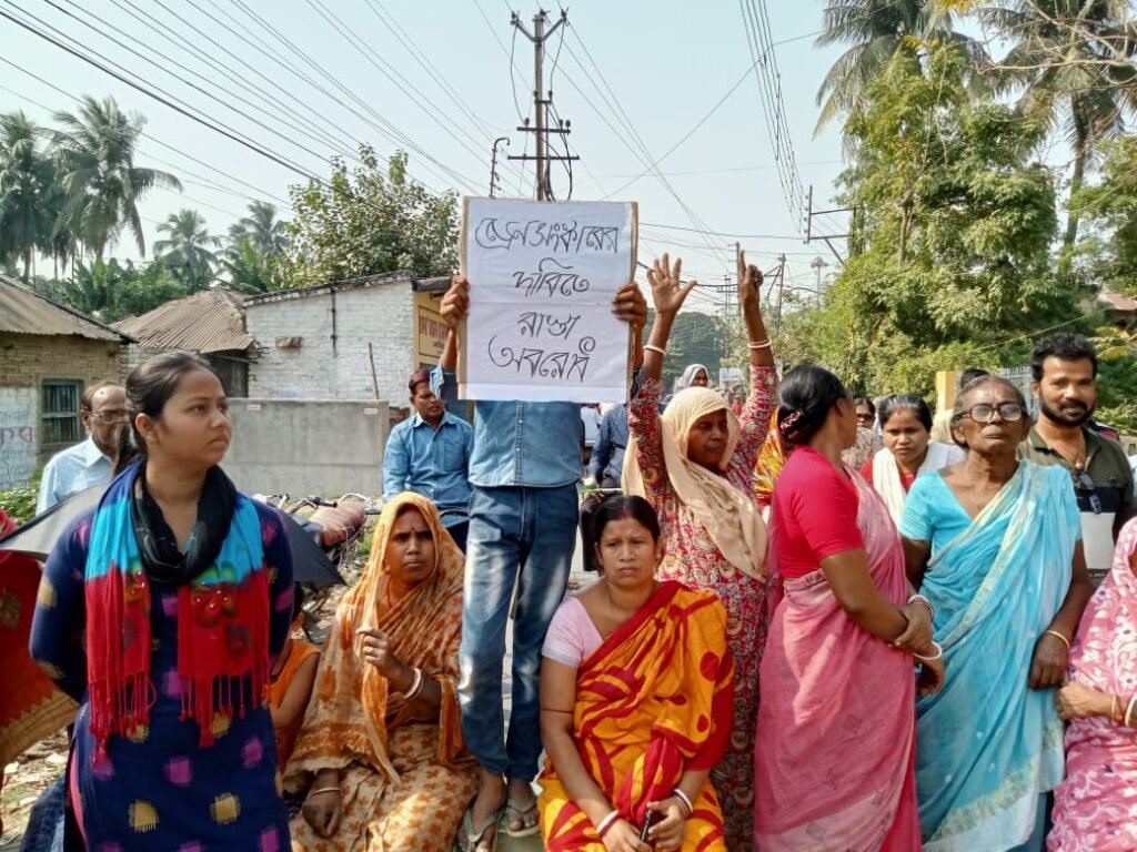 ড্রেন সংস্কারের দাবিতে চাকদা ভাগিরতি রোড অবরোধ বাসিন্দাদের।