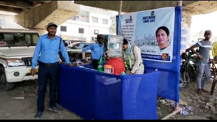 তীব্র গরমে চাকদহ ট্রাফিক পুলিশের পক্ষ থেকে পথ চলতি মানুষের জন্য আয়োজন করা হল জলছত্র