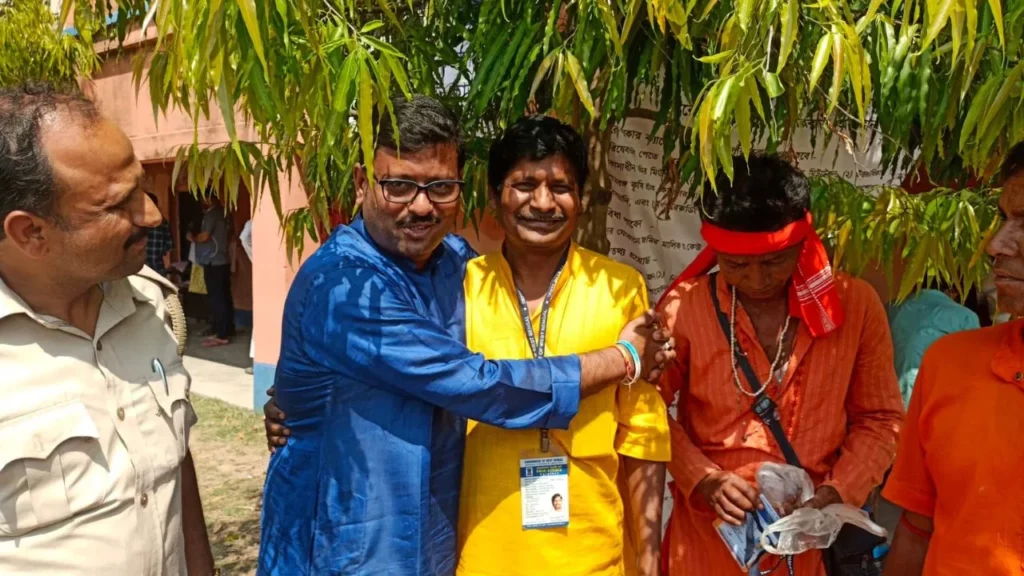 মুখ্যমন্ত্রী মমতা বন্দ্যোপাধ্যায়ের উদ্যোগে রাজ্যজুড়ে শুরু হয়েছে দুয়ারে সরকার কর্মসূচি। আর সেখানেই ঘটলো এক আজব কান্ড দুয়ারে সরকারে করতাল বাজাচ্ছেন বিজেপি নেতা। এমন অবিশ্বাস্য ঘটনাটি ঘটেছে মুর্শিদাবাদের বড়ঞা ব্লকের কুন্নরুন গ্রাম পঞ্চায়েত এলাকায়। জানা গেছে দুয়ারে সরকার কর্মসূচিতে উপস্থিত হওয়া ওই বিজেপি নেতার নাম সুখেন ভান্ডারী।তিনি মুর্শিদাবাদ দক্ষিণ সাংগঠনিক জেলা বিজেপির সহ সভাপতি। এদিন বরোয়া ব্লকের মান্দ্রা হাই স্কুলে হয়েছিল দুয়ারে সরকার শিবির। সেখানেই তাকে দেখা গেল করতাল বাজাতে। মূলত এদিন সরকারি প্রকল্পের প্রচারের জন্য বাউল সংগীতের আসর বসেছিল ।যেখানে নিত্যদিন বিজেপি তৃণমূলের নেতাদের সংঘর্ষের খবর উঠে আসে। সেখানে এমন দৃশ্য নজির বিহীন। তিনি জানান যে রাজনৈতিক নেতা হওয়ার আগে তিনি একজন শিল্পী।শুধু তাই নয় তৃণমূল বিধায়কের সাথে সৌজন্য বিনিময় করতেও তাকে দেখা গেলো।