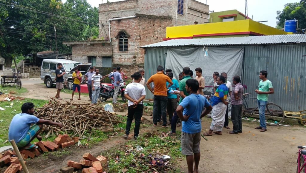 মলয় দে নদীয়া :-শান্তিপুর শহরের আট নম্বর ওয়ার্ডের মনসাতলা এলাকায় অত্যান্ত গুরুত্বপূর্ণ এলাকায় পৌরসভার রেকর্ডে থাকা একটি জমি নিয়ে দীর্ঘদিনের বিতর্ক পাশের জমির বর্তমান মালিক বাপ্পা মালাকারের সাথে। তার কথা অনুযায়ী, পুরসভার জায়গা হলেও স্থানীয় কাউন্সিলরের স্বামী সঞ্জয় কর ব্যবসা করেন ওই জমিতে, ক্লাব গড়ে ওঠার ফলে ওদের সমর্থনে লোকজনের সংখ্যাও বেশি। ব্যবসায়িক জায়গা কমে যাওয়ার কারণে, অধিকারের জমি তে বাড়ি করাও চক্ষুশুল হয়েছে তাদের। আগে বেশ কয়েকবারের মতন আজও নির্মাণকার্য বন্ধ করে দিলো কাউন্সিলর নিজে দাঁড়িয়ে থেকে।