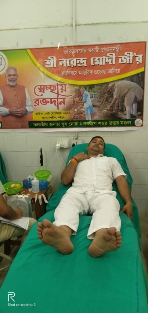প্রধানমন্ত্রী নরেন্দ্র মোদীর ৭৩ তম জন্ম দিবস উপলক্ষে নদীয়ার নবদ্বীপ ব্লাড ব্যাংকে রক্তদান বিজেপি কর্মী সমর্থকদের