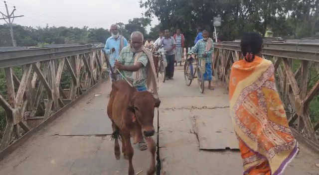 প্রায় একদশক ধরে বেহাল মালদার কালিয়াচক ২নং ব্লকের চৌধুরীটোলার লোহার ঝুলন্ত ব্রীজ। সংস্কার করার উদ্যোগ নেয় নি জেলা প্রশাসন। বারংবার প্রশাসনের দারস্থ হয়েছেন এলাকাবাসী। কিন্তু কোন কর্নপাত করা হয় নি। সম্প্রতি গুজরাটের ঝুলন্ত ব্রীজের দূঘটনার পর নড়েচড়ে বসল বাঙ্গীটোলা গ্রাম পঞ্চায়েতের প্রধান। ৪নভেম্বর শুরু হচ্ছে পঞ্চানন্দপুরের রাস মেলা। এই সময় এলাকায় ব্যাপক সমাগম হয় দর্শকের। ফলে এই ব্রীজটি গুরুত্বপূর্ণ হয়ে ওঠে চলাচলের জন্য। প্রচুর মানুষ এই ব্রীজটি ব্যবহার করে। এছাড়া এই ব্রীজটি গোঁসাইটোলা ও চৌধুরীটোলা দুটি গ্রামকে সংযোগ করেছে। যার উপর দিয়ে প্রতিনিয়ত প্রচুর মানুষ যাতাযাত করে। এই ব্রীজটির ফলে কালিয়াচক ও মালদার দুরত্ব অনেকটা কমে যায়। তাই এই ব্রীজটির গুরুত্ব অপরীসীম। কিন্তু এলাকাবাসীর দাবির পরও এই ব্রীজটি সংস্কার হয় নি। গুজরাটের ঝুলন্ত ব্রীজের দূঘটনার পর সংস্কারের উদ্যোগ নেওয়া হল। প্রায় তিন লক্স টাকা জরুরী ভিত্তিতে খরচ করে নতুন ইস্পাতপাত লাগানো হচ্ছে এই ব্রীজটিতে। বাঙ্গীটোলা গ্রাম পঞ্চায়েত প্রধান তহিদুর রহমান বলেন ব্রীজটির ইস্পাত খয়ে গিয়ে বিপদজনক হয়ে উঠেছে ব্রীজটি। উত্থরবঙ্গ উন্নয়ন দপ্তরের প্রতিমন্ত্রী সাবিনা ইয়াসমিনকে স্থায়ী কংক্রীতের ব্রীজের জন্য আবেদন করা হয়েছে। যেহেতু এখনও তা অনুমোদন হয় নি। তাই জরুরিভিত্তিতে সংস্কারের কাজ করে চলাচলের উপযোগী করার ব্যবস্থা করা হচ্ছে।