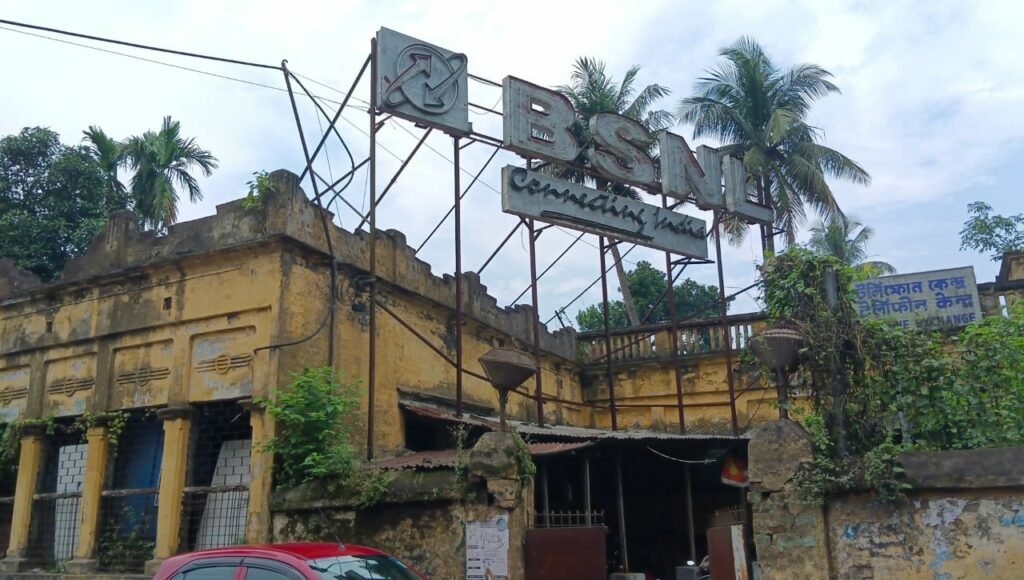 মলয় দে নদীয়া:- বিশ্বকর্মা পূজার দিনেও শান্তিপুর মতিগঞ্জ মোড়ে অবস্থিত বিএসএনএল ভবনের জোড়ার জন্য অবস্থা পাঁচিল বেয়ে উঠেছে লতানো গুল্ম, সাইনবোর্ড ঢেকেছে তাতেই। চারিদিকে ধুলো নোংরা আর আবর্জনা স্তুপ। অথচ ১৯৯৩ সালে যখন এস টি ডি চালু হলো তখন ঝা চকচকে এই অফিস ভাড়া নিয়ে উদ্বোধন হয়। দিগনগর মতিগঞ্জ গোবিন্দপুর বাগআঁচড়ার মত বেশ কয়েকটি ইউনিটও খোলা হয় কাজের চাপে। শান্তিপুর কলেজ সন্নিহিত খড়জলা পাড়ায় একটি আড়াই বিঘের সম্পত্তি কেনা হয় স্থায়ী অফিস বানানোর জন্য।