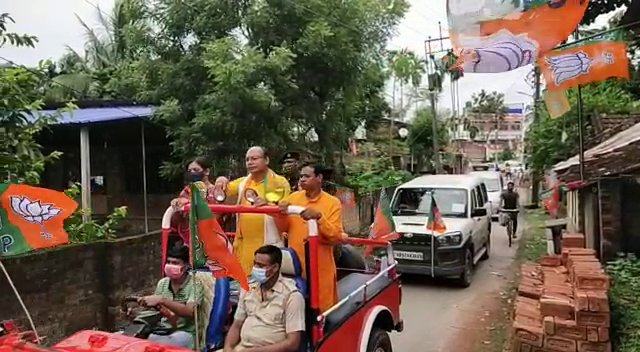 মলয় দে নদীয়া:- সকাল সাতটা থেকে বিজেপির প্রার্থী নিরঞ্জন বিশ্বাস কে সাথে নিয়ে বাড়ি বাড়ি সম্পর্ক যাত্রা শুরু করেছে নদীয়ার শান্তিপুর বিজেপির দু’নম্বর শহর মন্ডল। এরপর এগারোটা নাগাদ ডাবের পারায় তাদের কার্যালয় থেকে হুড খোলা গাড়ি, বেশ কয়েকটি চারচাকা এবং মোটরসাইকেল নিয়ে সমগ্র শহর মন্ডল 2র প্রচারের উদ্দেশ্যে ঘুরে বেড়ান তিনি এবং দলীয় কর্মী সমর্থকরা। উপস্থিত ছিলেন নদিয়া দক্ষিণ বিজেপি সাংগঠনিক সভাপতি অশোক চক্রবর্তী, চাকদার বিধায়ক বঙ্কিম ঘোষ, রানাঘাটের বিধায়ক পার্থ চ্যাটার্জি, বিহারের এমএলএ এবং রাষ্ট্রীয় মহিলা মোর্চার বেঙ্গল সেক্রেটারি নিশা সিং, রাজ্য বিজেপি এক্সিকিউটিভ মেম্বার অরুণ কুমার সিনহা।