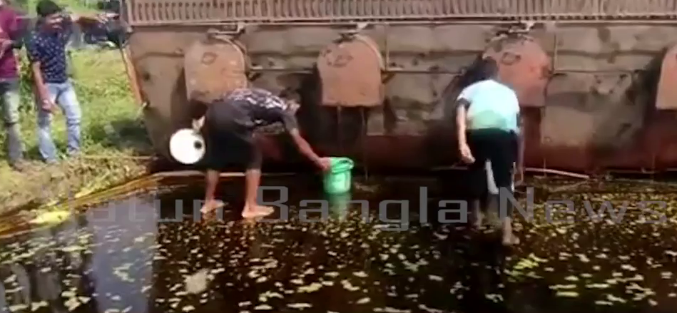 রাস্তায় বইছে ভোজ্য তেলের নদী, অবাধে চলছে তেলের লুট,সড়কপথে বয়ে চলেছে তেলের নদী, আর যে যেভাবে পারছে সেই ভোজ্য তেল লুটে নিচ্ছে। বাটি গামলা বালতি পলিথিন বোতল যার কাছে যা আছে তাতেই চলছে তেলের বোঝাই। ভাবছেন এমন তেলের নদী কোথায় আছে? ঘটনাটি হাওড়ার উলুবেরিয়ার জাতীয় সড়কে। শুক্রবার সকালে এলাকার জেলেপাড়া ব্রিজের কাছে একটি ভোজ্য তেলের ট্রাক দুর্ঘটনায় পাল্টি খেয়ে যায় আর সেখান থেকেই রাস্তা থেকে ভোজ্যতেল গড়িয়ে আসতে থাকে মাঠের মাঝ দিয়ে তেল গড়িয়ে তা পরিণত হয়েছে এক পুকুরে। আর এই খবর পাওয়া মাত্রই স্থানে ছুটে আসে এলাকার বাসিন্দারা। যে যেভাবে পারছে লুটে নিয়ে যাচ্ছে ভোজ্য তেল। এমন সুবর্ণ সুযোগ আর কে ছাড়ে। খবর পেয়ে তড়িঘড়ি সেখানে পৌঁছায় স্থানীয় থানার পুলিশ। বারবার সকলকে নিষেধ করা সত্ত্বেও স্থানীয় বাসিন্দারা তেল নিয়েই চলেছে। তবে এই দুর্ঘটনায় কারো কোনো ক্ষয়ক্ষতির খবর পাওয়া যায়নি। ভোজ্য তেল উদ্ধার না করে ঘন্টা অব্দি চলল অবাধে তেলের লুট।