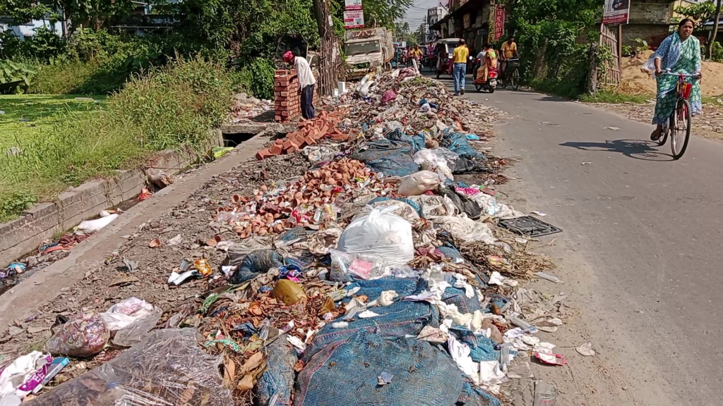 রাস্তার ধারে জমে থাকা আবর্জনায় নাজেহাল চাকদহবাসী