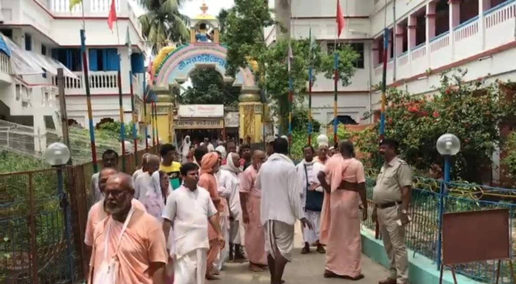 মলয় দে নদীয়া:- নদীয়ার তীর্থ নগরী নবদ্বীপ শহর, সম্প্রতি যার মুকুটে লেগেছে ” হেরিটেজ সিটির ” পালক, এবার সেই মন্দিরনগরী শহরেই এক মন্দিরের আচার্য পদ নিয়ে তৈরী হলো বিভ্রাট,, জল গড়াল থানা পুলিশ পর্যন্ত, মন্দিরের গেটে বসে বিক্ষোভও দেখাল একদল সাধু-সন্ত সহ মন্দিরের ভক্তরা।