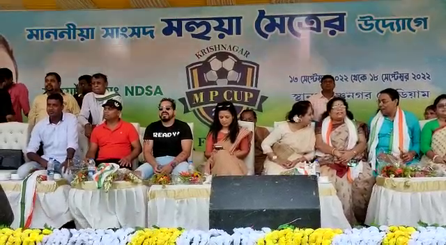 মলয় দে নদীয়া :-সাংসদ মহুয়া মৈত্রের উদ্যোগে কৃষ্ণনগর ডিএল রায় স্টেডিয়ামে আজ থেকে শুরু হয়েছে এমপি কাপ ফুটবল প্রতিযোগিতা। কৃষ্ণনগর লোকসভা কেন্দ্রের অন্তর্গত তেহট্ট, পলাশীপাড়া ,কৃষ্ণনগর উত্তর, কৃষ্ণনগর দক্ষিণ, কালিগঞ্জ, নাকাশিপাড়া ,চাপরা এই সাতটি বিধানসভার সাতটি দল অংশগ্রহণ করেছে।খেলা দেখতে অন্যান্যদের মধ্যে উপস্থিত ছিলেন রাজ্যের মন্ত্রী উজ্জ্বল বিশ্বাস,বিশিষ্ট ফুটবলার ষষ্ঠী দুলে , সংগ্রাম মুখার্জি প্রমুখ। ফাইনাল খেলা হবে ১৮ ই সেপ্টেম্বর কৃষ্ণনগরে।