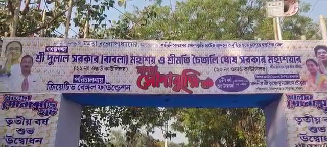হস্ত শিল্পীদের আয়ের লক্ষ্যে সোনাঝুরি হাটের আনুষ্ঠানিক উদ্বোধন। ইংরেজবাজার পৌরসভার ২০ ও ২২ নম্বর ওয়ার্ড কাউন্সিলরের উদ্যোগে সোনাঝুরি হাটের আয়োজন।মঙ্গলবার বিকেলে মালদা শহরের মহানন্দা শিশু উদ্যানে আয়োজন করা হয় সোনাঝুরি হাটের।ফিতে কেটে ও প্রদীপ প্রজ্বল করে সোনাঝুরি হাটের আনুষ্ঠানিক উদ্বোধন করেন ইংরেজবাজার পৌরসভার চেয়ারম্যান কৃষ্ণেন্দু নারায়ন চৌধুরী। এছাড়াও উপস্থিত ছিলেন, মালদা জেলা শিল্প কেন্দ্রের জেনারেল ম্যানেজার মানবেন্দ্র মন্ডল, উদ্যোক্তা তথা কাউন্সিলর দুলাল সরকার, চৈতালি ঘোষ সরকার, গৌতম দাস পূজা দাস ,সংস্থার সম্পাদক রাজশ্রী দাস সহ অন্যান্য কাউন্সিলর ও আধিকারিকরা।আগামী ২০ তারিখ সাত দিন ধরে চলবে সোনাঝুরি হাট। রাজ্যের বিভিন্ন জেলার শতাধিক শিল্পী তাদের হাতে তৈরি করা বিভিন্ন সামগ্রীর পসরা সাজিয়ে বসেছেন সোনাঝুরি হাটে। কাপড়, কাঠের তৈরি আসবাবপত্র সহ ঘর সাজানোর সামগ্রীর পসরা সাজিয়ে বসেছেন বিক্রেতারা।এর পাশাপাশি মেলা প্রাঙ্গণে প্রতিদিন সন্ধ্যায় অনুষ্ঠিত হবে সাংস্কৃতিক অনুষ্ঠান।