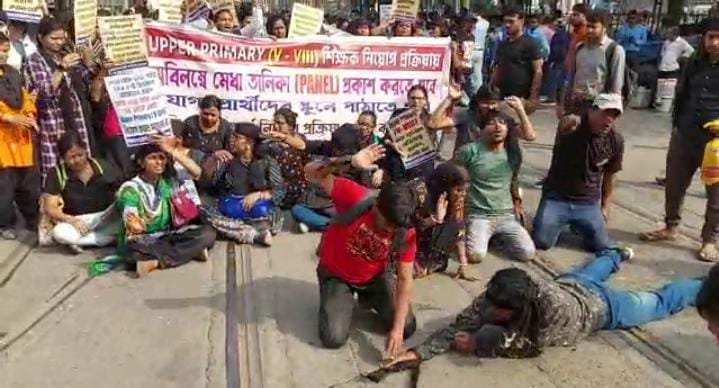 হামাগুড়ি দিয়ে চাকরিপ্রার্থীদের অভিনব প্রতিবাদ