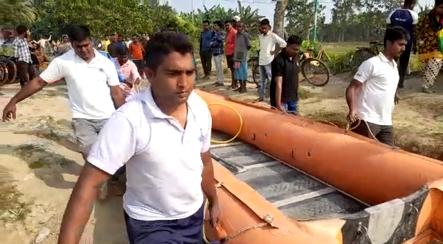 ১২ ঘন্টা অতিক্রান্ত হয়ে গেলেও খুঁজে পাওয়া গেল না চাকদহ গৌরনগর গঙ্গায় তলিয়ে যাওয়া বৃদ্ধকে,সকাল সকাল চাকদহ গৌরনগর গঙ্গাঘাটে চলার থেকে মাছ গঙ্গায় পড়ে নিখোঁজ এক বৃদ্ধ। নিখোজ ওই বৃদ্ধের নাম মধুসূদন মজুমদার এবং তার বয়স আনুমানিক ৬৫ বছর। পুলিশ সূত্রে জানা যায়, ওই বৃদ্ধর বাড়ি চাকদহ পৌরসভার ২ নম্বর ওয়ার্ডের রাজ বাগানে। পেশায় একজন কল মিস্ত্রি ওই বৃদ্ধ গতকাল ওপারে মিলনগরের একটি বাড়িতে কলের কাজে যান। রাত বেশি হয়ে যাওয়ায় শেষ ট্রলারটি তিনি ধরতে পারেন নি। যার ফলে ঘাটে তিনি এবং তার সাথে আরো যে ব্যক্তিরা কাজে গিয়েছিলেন তারা থেকে যায়। অবশেষে আজ ভোরের প্রথম ট্রলারটি ধরে তারা ফেরার উদ্দেশ্যে রওনা দেয় ওপার থেকে। প্রথম ট্রলার ধরে মিলন নগর ঘাট থেকে গৌরনগর ঘাটে আসছিলেন যখন তখনই হঠাৎ মাঝ গঙ্গায় ওই বৃদ্ধ টলার থেকে পড়ে যায়। তৎক্ষণাৎ ট্রলার চালক ট্রলার ঘুরিয়ে তাকে খোঁজাখুঁজি করে কিন্তু তাকে আর খুঁজে পাওয়া যায়নি। ঘটনাস্থলে পৌঁছায় চাকদাহ থানা পুলিশ প্রশাসন। আত্মীয়-স্বজন এবং প্রতিবেশীরা সকলে মিলে চলার নিয়ে বিভিন্ন জায়গায় তাকে খোঁজাখুঁজি করলেও এখন ওর বিরুদ্ধে কোন সন্ধান পাওয়া যায়নি। এরপর এই ঘটনাস্থলে পৌঁছায় নদীয়া জেলার বিপর্যয় মোকাবিলা বাহিনী। কুইক রেসপন্স টিমের ডুবুরিরা গঙ্গায় নেমে ওই বৃদ্ধের তল্লাশি অভিযান চালাচ্ছে। প্রসঙ্গত উল্লেখ্য, খৈনি খেতে খেতে হঠাৎ ই ট্রলারের একেবারে ধারে চলে যান ওই বৃদ্ধ। আর তখনই ঘটে এমন মর্মান্তিক দুর্ঘটনা। আপাতত পুলিশ প্রশাসন এবং কুইক রেসপন্স টিম যত দ্রুত সম্ভব মধুসূদন মজুমদারকে খুঁজে বের করার চেষ্টা করছে। ঘটনাস্থলে পৌঁছালেন চাকদহ 2 নং ওয়ার্ডের কাউন্সিলর সত্যজিৎ বিশ্বাস, চাকদহ পৌরসভার চেয়ারম্যান অমলেন্দু দাস এবং ভাইস চেয়ারম্যান দেবব্রত নাগ।