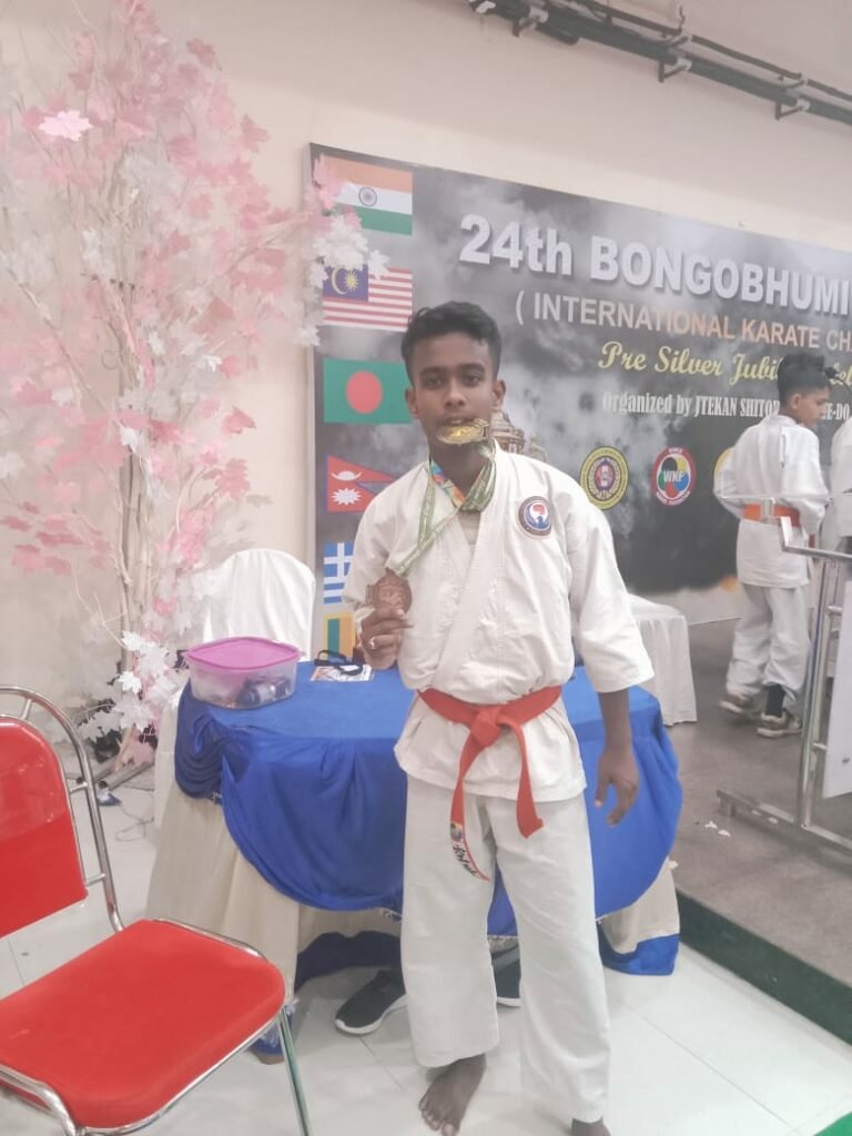 24th বঙ্গভূমি ক্যারাটে চ্যাম্পিয়নশিপে ব্রোঞ্জ এবং সোনা জয় চাকদহের কিশোরের