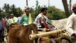 পেট্রোল-ডিজেলের মূল্যবৃদ্ধির প্রতিবাদে গরুর গাড়ি চড়ে অভিনব প্রচার শান্তিপুরের তৃণমূল প্রার্থী অজয় দের April 6, 2021