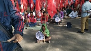 পাওয়ারলুম শ্রমিকদের বেতন বৃদ্ধির দাবিতে বিডিও অফিসের সামনে রাস্তা অবরোধ করে বিক্ষোভ CITU December 20, 2021
