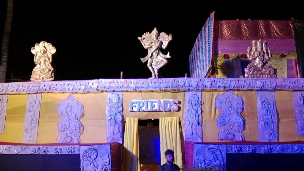 নৌকার আদলে সেজে উঠেছে চাকদহ গৌড়পাড়া ফ্রেন্ডস ক্লাবের কালী মন্ডপ