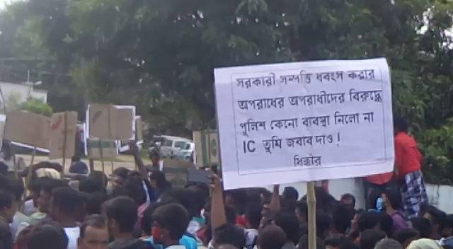নদিয়ার করিমপুরে প্রেক্ষাগৃহে ফলক চুরির ঘটনায় থানা ঘেরাও