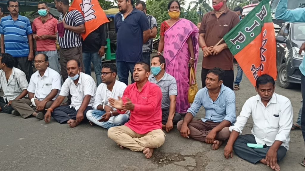 মলয় দে নদীয়া:- সাংসদ এবং নেতা কর্মীদের আক্রান্ত হওয়ার প্রতিবাদে নদীয়ার শান্তিপুরের বাইপাসে 34 নম্বর জাতীয় সড়ক অবরোধ করে বিক্ষোভ বিজেপির। উল্লেখ্য শান্তিপুর থানার বেলঘড়িয়া 2 নম্বর গ্রাম পঞ্চায়েতের অনাস্থা ভোটের জন্য শান্তিপুর বিডিওর কাছে একটি লিখিত আবেদন করে বিজেপি। সেইমতো প্রশাসনের উদ্যোগে আজ বেলঘড়িয়া 2 নম্বর গ্রাম পঞ্চায়েতে অনাস্থা ভোট প্রক্রিয়া শুরু হয়। বিজেপির দাবি আজ সেখানেই উপস্থিত হন বিজেপি সাংসদ জগন্নাথ সরকার এবং বিজেপির নেতাকর্মীরা। হঠাৎ তৃণমূল কর্মীরা বিজেপি সাংসদ কে লক্ষ করে তেড়ে আসে। কোনরকমে পুলিশ এবং সাংসদের নিরাপত্তা কর্মীরা সাংসদকে ঘটনাস্থল থেকে নিয়ে চলে যায়। সেখানে এক বিজেপি নেতা কর্মীরা আক্রান্ত হন। বিজেপির অভিযোগ তৃণমূল আশ্রিত দুষ্কৃতীরা আগ্নেয়াস্ত্র দেখিয়ে পুলিশের সামনেই বাঁশ দিয়ে বেধড়ক মারধর করতে থাকে তাদের। মূলত এই ঘটনার প্রতিবাদে 34 নম্বর জাতীয় সড়ক অবরোধ করে বিক্ষোভ দেখায় বিজেপি। তাদের দাবি প্রশাসন রাজ্য সরকারের অঙ্গুলিহেলনে চলছে। অবিলম্বে যারা বিজেপি কর্মীদের ওপর আক্রমণ চালিয়েছে এবং সাংসদকে হেনস্তা করেছে তাদের আইনত ব্যবস্থা নিতে হবে। না হলে আগামী দিনে আরো বড়সড় আন্দোলন আমার হুঁশিয়ারি দিয়েছে বিজেপি।