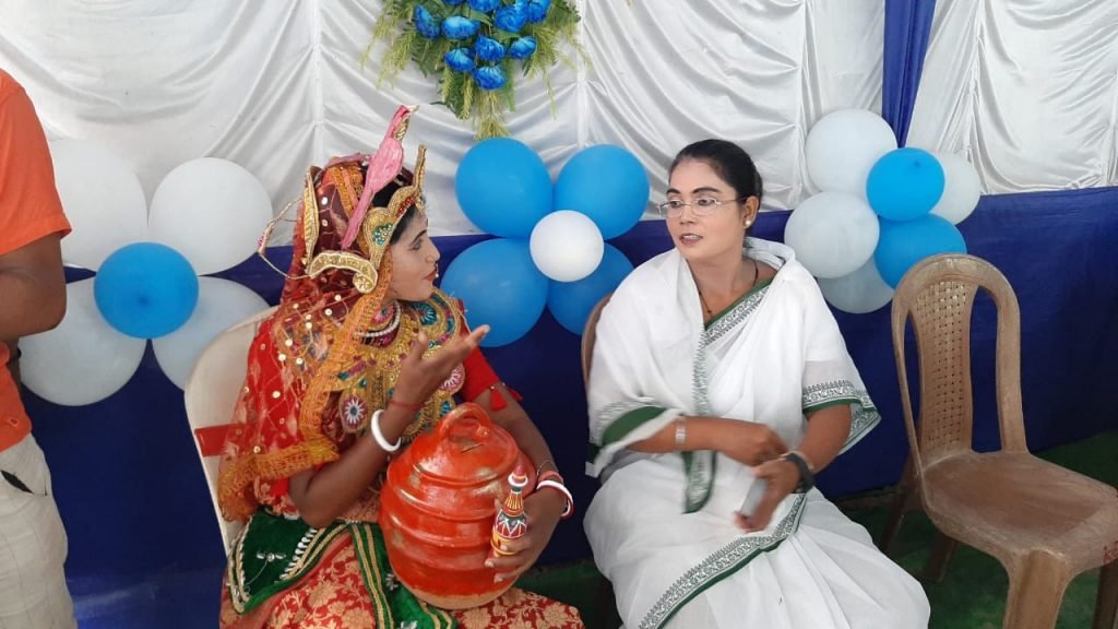 এখানে যে মুখ্যমন্ত্রী ঘোরাফেরা করছেন তা মমতা বন্দ্যোপাধ্যায়ের রূপক হিসেবে সুসজ্জিত হয়েছে জানালেন প্রধান উৎপল বসাক ,তিনি বলেন এত মানুষের পরিষেবা একসাথে দিতে দেরি তো একটু হচ্ছেই, তাই ঘরের লক্ষীদের একঘেয়েমি কাটাতে, তাদের মনোরঞ্জনের জন্য এ ব্যবস্থা।