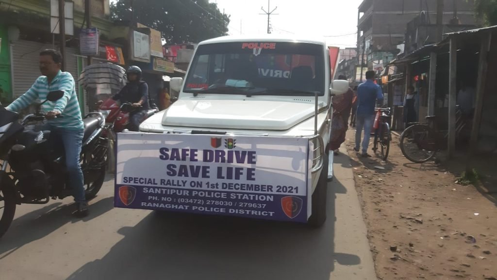মলয় দে নদীয়া:- পথ দুর্ঘটনার হাত থেকে মানুষকে সচেতন করতে রানাঘাট পুলিশ জেলার নির্দেশে শান্তিপুর থানার উদ্যোগে শান্তিপুরের রাজপথে সেভ ড্রাইভ সেফ লাইফ এর কর্মসূচি। বুধবার শান্তিপুর ডাকঘর মোর থেকে এই সেভ ড্রাইভ সেভ লাইফ কর্মসূচি শুরু হয়, শেষ হয় শান্তিপুর স্টেশন সংলগ্ন গোলপার্ক মোড়ে। উল্লেখ্য গত কয়েকমাস ধরেই শান্তিপুরের বিভিন্ন এলাকায় মাঝেমধ্যেই পথ দুর্ঘটনা ঘটছে, আহত হচ্ছেন একাধিক ব্যক্তি। এবার সাধারণ মানুষকে পথ দুর্ঘটনা থেকে সচেতন করতে সেভ ড্রাইভ সেভ লাইফ কর্মসূচি পালন করল শান্তিপুর থানার পুলিশ। এই কর্মসূচিতে উপস্থিত ছিলেন শান্তিপুর থানার একাধিক পুলিশ আধিকারিক সহ শান্তিপুর থানার সিভিক ভলেন্টিয়ার।